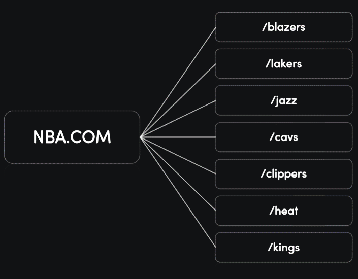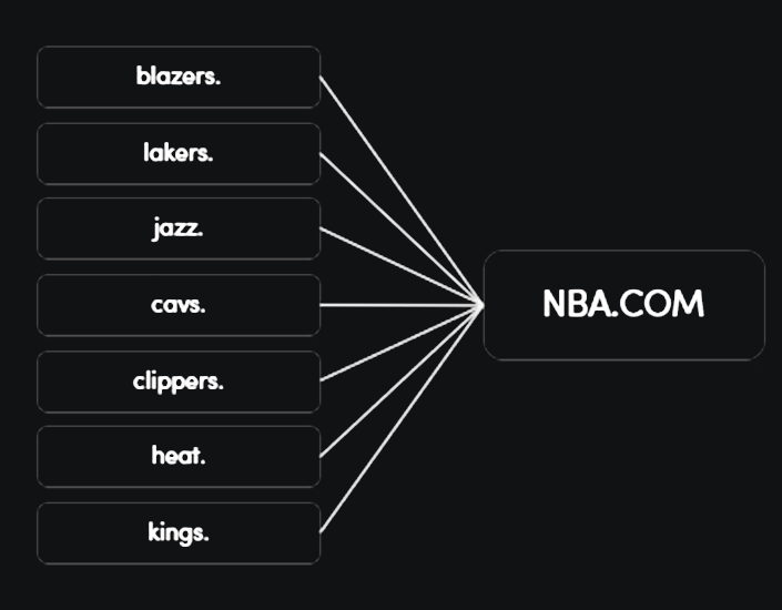 Most of the Major Sports Leagues use a system of directories, instead of subdomains to create sites for the various franchises like nba.com/lakers. This contrasts how other eCommerce platforms work. Most eCommerce sites use an eTLD+1 (subdomain), like mywidget.shopify.com for which Facebook designed a support system. If the leagues in question were to switch to either root domains or subdomains instead of directories, that would solve one piece of the puzzle like clippers.nba.com instead of nba.com/clippers.